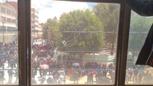 Lo que prometía ser una manifestación pacífica del sector del autotransporte en Viacha terminó en un escenario de tensión y violencia este jueves. Decenas de conductores, acompañados por sus dirigentes, se congregaron frente a la alcaldía para exigir respuestas a sus demandas, pero el ambiente se caldeó cuando un grupo de manifestantes intentó ingresar por la fuerza al palacio consistorial, lo que derivó en un forcejeo con miembros de la guardia municipal.